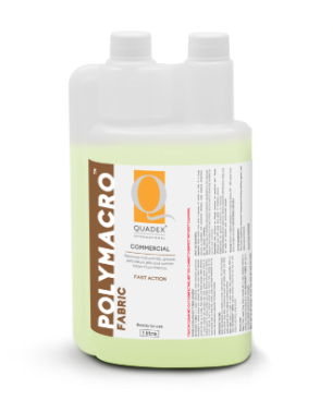 POLYMACRO™ FABRIC is a HIGHLY EFFECTIVE STAIN REMOVER specifically formulated to remove natural and synthetic oils from most fabrics. Removes natural oil build up on towels, face cloths and facial sponges. Highly effective to remove massage oils, petroleum jelly, face creams and suntan lotion (or residues thereof) on fabrics, textiles, and towels. Removes petroleum oil, gearbox oil and hydraulic fluid on stained overalls and removes food, cooking oil and salad dressing spills on shirts, ties, dresses, pants, and soiled tablecloths. Can be used by the automotive, restaurant and beauty industry.